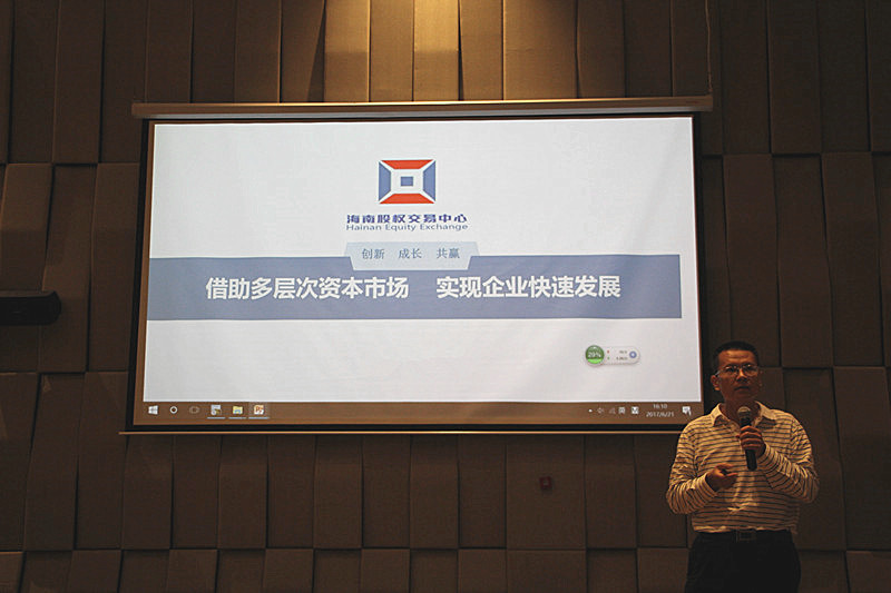 海南股權(quán)交易中心培訓(xùn)總監(jiān)馮偉民在活動(dòng)上向各企業(yè)介紹股交中心的功能、作用及近期開展的工作,作為海南省唯一合法的區(qū)域性股權(quán)交易市場運(yùn)營機(jī)構(gòu),股交中心積極集聚金融資源,積極發(fā)揮規(guī)范、培育、輔導(dǎo)等功能和作用,完善融資渠道和融資方式,大力解決企業(yè)發(fā)展難題。