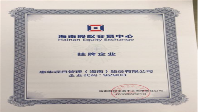 | 企業(yè)全稱: | 惠華項(xiàng)目管理(海南)股份有限公司 |