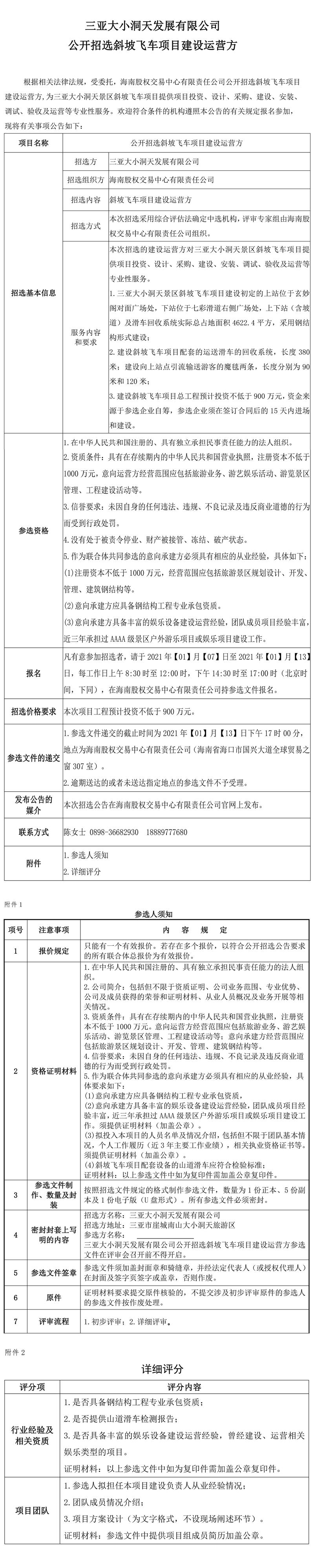 關于三亞大小洞天發(fā)展有限公司公開招選斜坡飛車項目建設運營方的公告