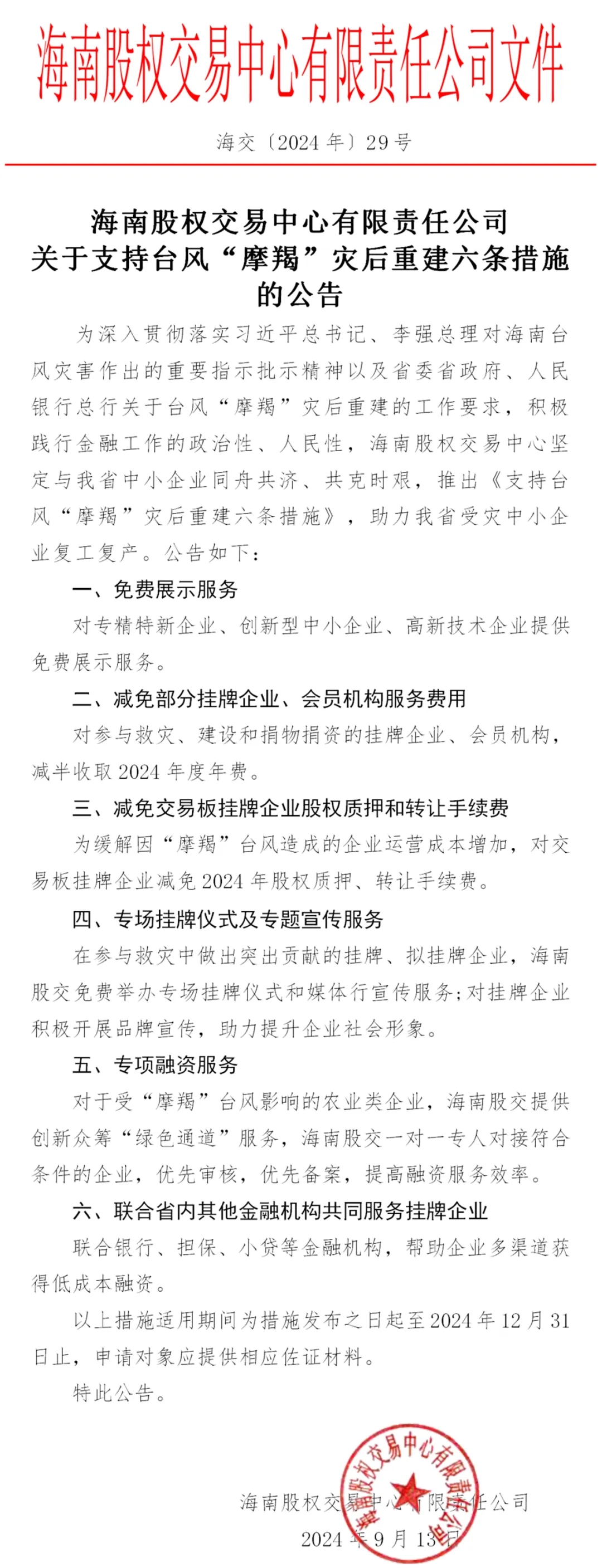 海南股權(quán)交易中心將深入了解受災(zāi)中小企業(yè)影響情況以及各方面的需求,充分發(fā)揮綜合金融服務(wù)平臺(tái)作用,幫助企業(yè)對接省內(nèi)其他金融機(jī)構(gòu),全力解決企業(yè)資金周轉(zhuǎn)難題,為堅(jiān)決打贏災(zāi)后重建攻堅(jiān)戰(zhàn),助力我省中小企業(yè)恢復(fù)生產(chǎn)經(jīng)營貢獻(xiàn)力量。